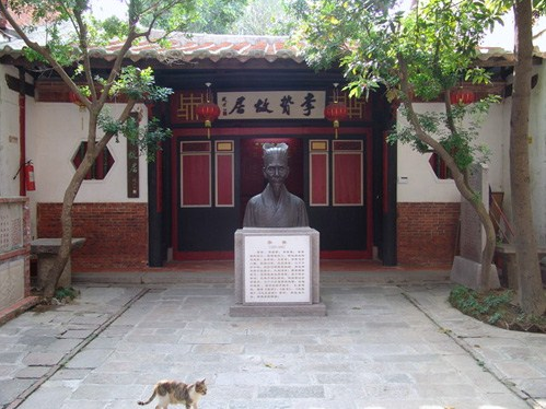 李贄故居位于泉州鯉城區(qū)南門萬壽路123號,為一座兩進三開間的普通民房,現(xiàn)前落只剩一間通道,正廳建筑形式為坡屋頂,磚木結(jié)構,廳堂內(nèi)案桌供脫胎李贄塑像,后有李贄家族族系圖。廳口聯(lián)文為“聯(lián)濟南隴西為鼎族;蔚政事文學之名賢”;廳中楹聯(lián)為“兩支雙名宦;三世四鄉(xiāng)賢”。正廳兩側(cè)有現(xiàn)任副市長周錕民題留的李贄在云南姚安知府任上所撰對聯(lián)“聽政有悠閑,不妨甓運陶齋,花栽潘縣;做官無別物,只此一庭明月,兩袖清風。”清同治間(1862-1874)修葺時,在該廳右側(cè)出土有李贄石質(zhì)印章兩枚,一刻陰文“李贄”,一刻陽文“卓吾”?,F(xiàn)分別收藏于中國歷史博物館和泉州海外交通史博物館,此次辟李贄紀念館專門復制陳列,泉州師院歷史系教授吳幼雄捐出收藏的李贄祖母墓志銘也陳列于此。經(jīng)鯉城區(qū)本屆政府的關心重視,重新整葺的故居辟為李贄紀念館,并請全省知名雕塑家楊振榮雕塑了李贄半身銅像一尊,并刻有李贄生平簡歷,供游客贍仰。故居占地面積495平方米。