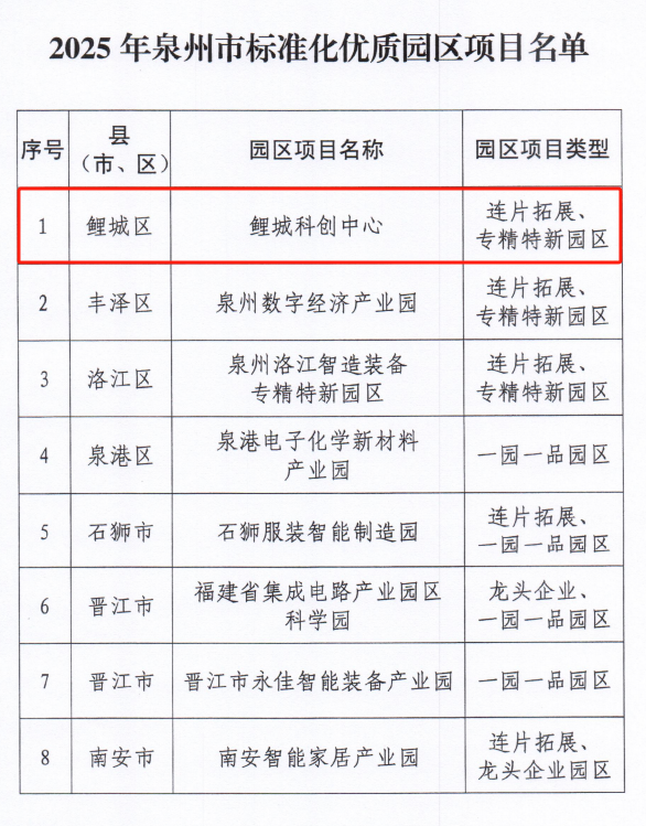 近日,2025年泉州市標準化優(yōu)質園區(qū)項目名單正式公布。鯉城高新區(qū)科創(chuàng)中心榜上有名,被評為泉州市級標準化優(yōu)質園區(qū)項目(連片拓展、專精特新園區(qū)類型)。