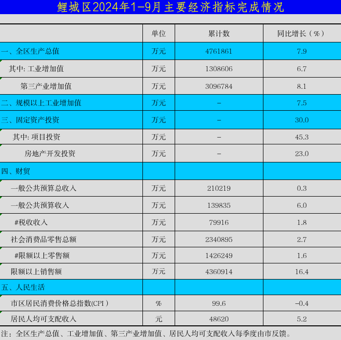 鯉城區(qū)2024年3季度主要經(jīng)濟(jì)指標(biāo)完成情況